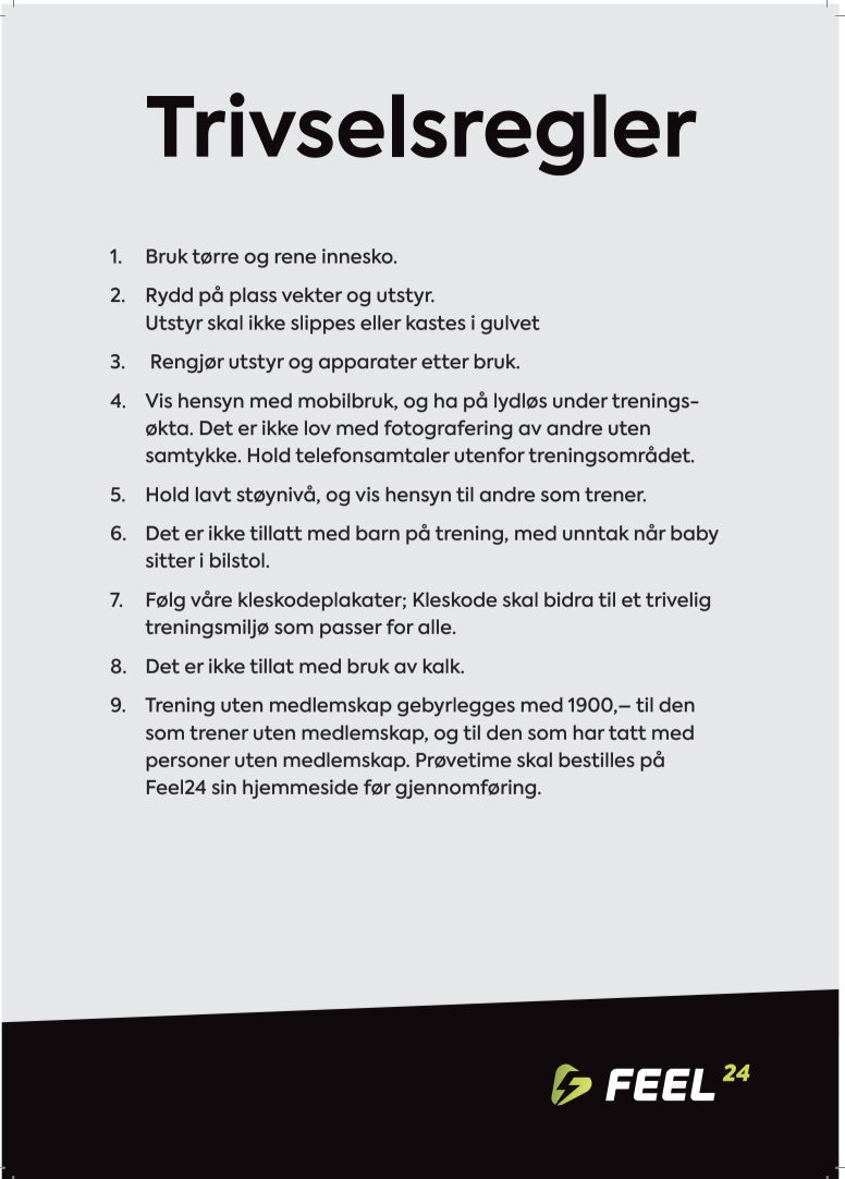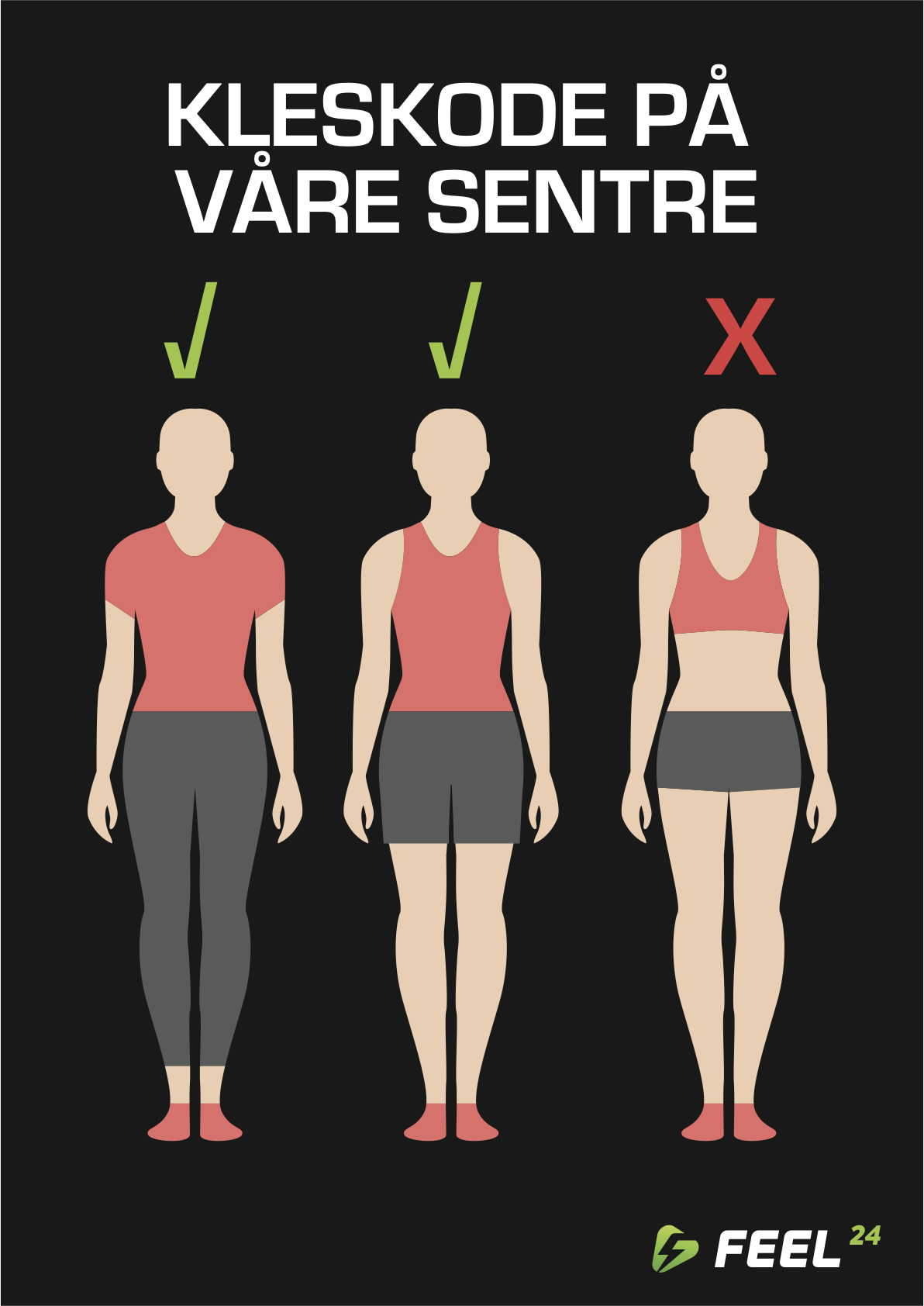 Reglene og kleskodene skal også henge synlige på våre senter.